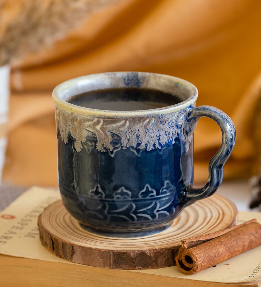 The Blending Blue Ceramic Mug is part of our NEW Studio Pottery Mug Collection. The Gorgeous Indigo Blue color fuses throughout the mug, from the top to the bottom, and imparts a very elegant feeling to this tea coffee mug.Available as a Set of 2 mugsMade of Ceramic, 100% HandmadeCapacity 220 mlBeautiful Indigo Blue colorMicrowave, Dishwasher, and Food Safe