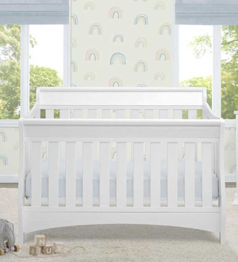 .Featuring a beautiful, understated sleigh silhouette, the Bentley 'S' Series 4-in-1 Crib from Delta Children delivers functionality and outstanding value for years to come. Made of strong and sturdy wood, this multi-positional crib is built to handle anything your child throws its way, and easily converts to a cozy toddler bed, daybed and full size bed.(Daybed/Sofa Rail included; Toddler Guardrail and Full Size Bed Rails sold separately).