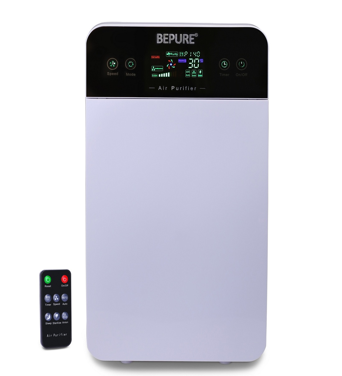 AIR QUALITY MONITOR: The Bepure Air Purifier can read the air quality and temperature in the surrounding room using an i-Sense detection system and showing it on display in real time.