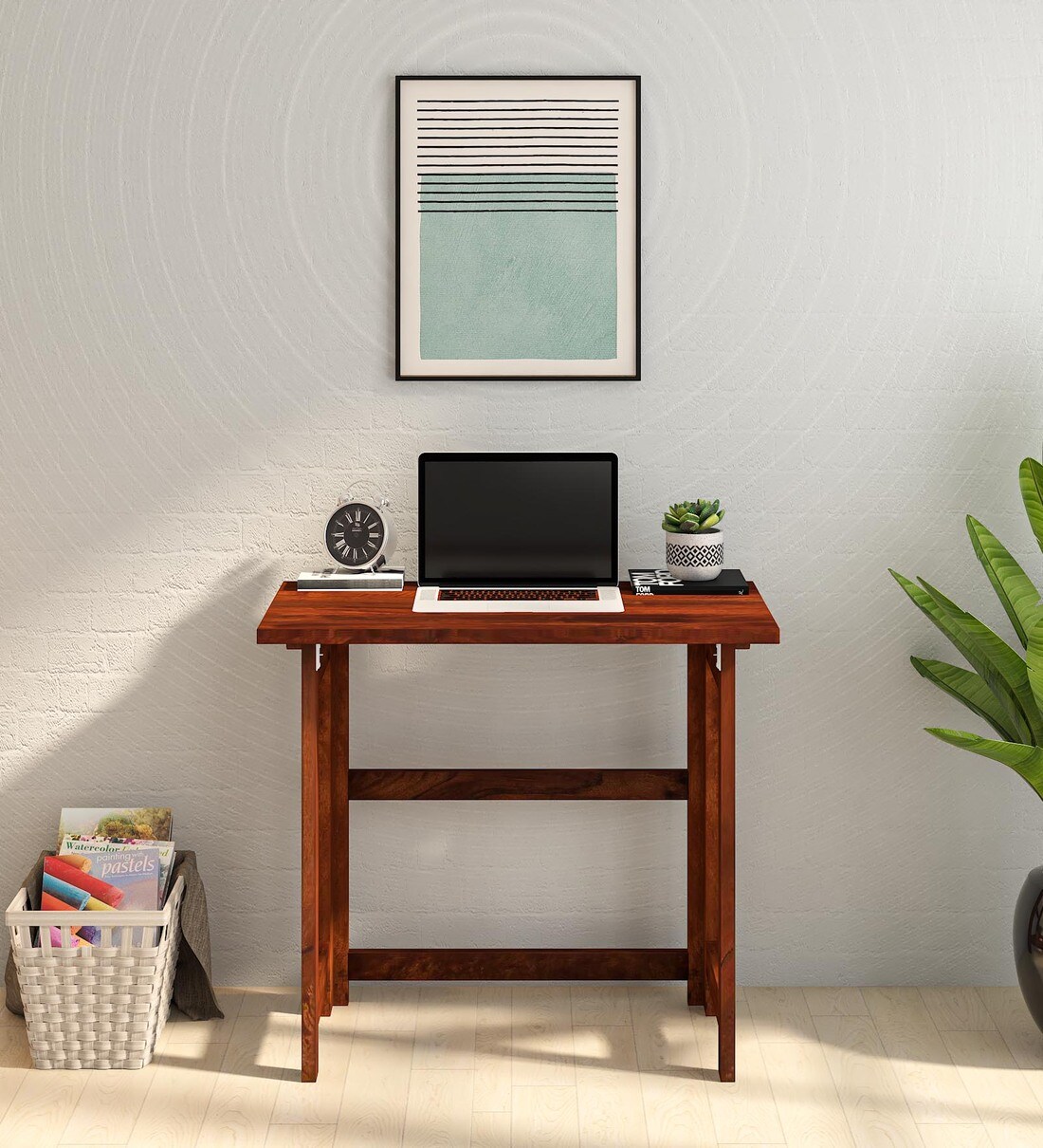 Bern Z Solid Wood Foldable Writing Table In Honey Oak Finish