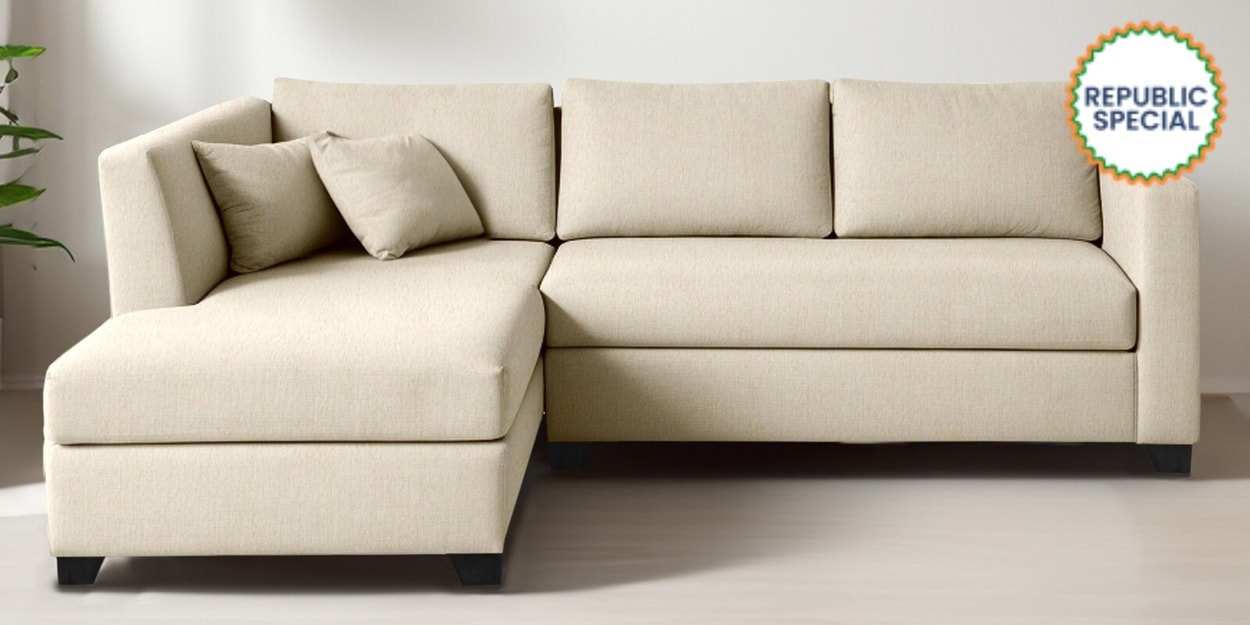Bingo Fabric RHS Sectional Sofa (2+ Lounger) In Creamy Cashmere Colour
