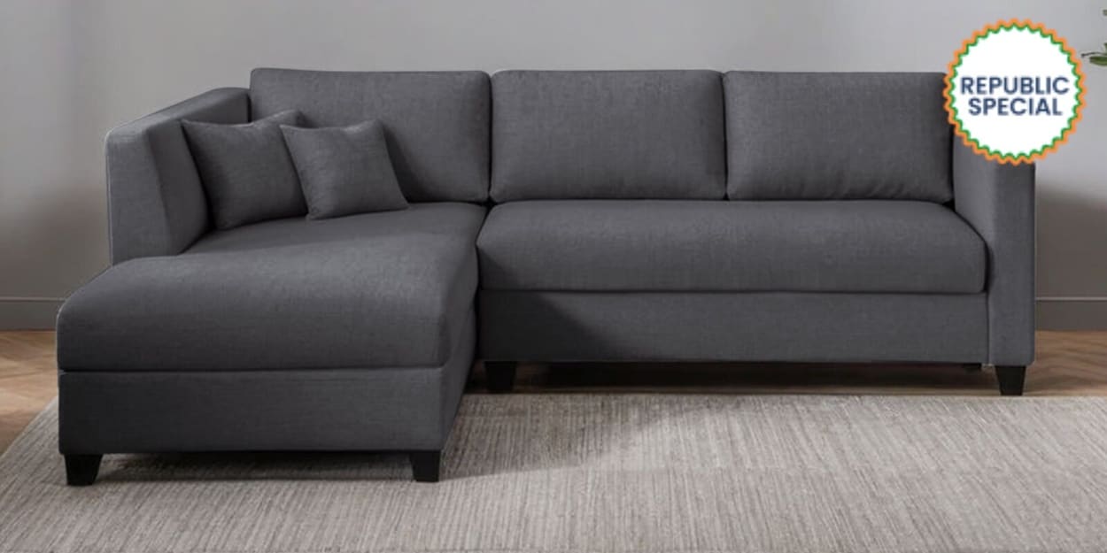 Frame material : 4 side planed Neem wood & commerical grade 12mm calibrated ply Leg material : PVC Legs Foam Density : 32D High Grade foam with a combination of hard and soft Seat Suspension : 3" Narrow Woven Elastic Belt with a tension strength of 1.7 tons Ground Clearance : 2.5 inches Sofa Seating Depth : 24 inches Sofa Seating Width : 47.5 inches Lounger Seating Depth : 66 inches Lounger Seating Width : 24 inches Throw Cushion : 2 Seating Height : 17 inches Disclaimers: Accessories shown in the image are only for representation and are not part of the product. Depending on your screen settings and resolution on your device there may be a slight variance in fabric colour and wood polish of the image and actual product. Wood grains will vary from product to product in case of solid wood furniture. Furniture having intricate hand-painted details are individual unique pieces and may have slight distinctions and variance between the picture and actual product. The Primary material is the main material used to manufacture the product and in addition to the primary material there might also be other types of materials used in the manufacturing of the product This Sofa comes with 2 Pillows for extra comfort