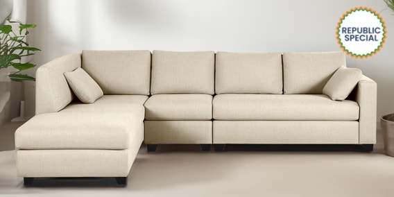 Bingo Fabric RHS Sectional Sofa (3+ Lounger) In Creamy Cashmere Colour