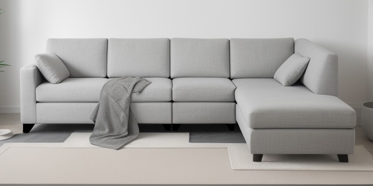 Bingo Velvet LHS Sectional Sofa (3+ Lounger) In Grey Colour