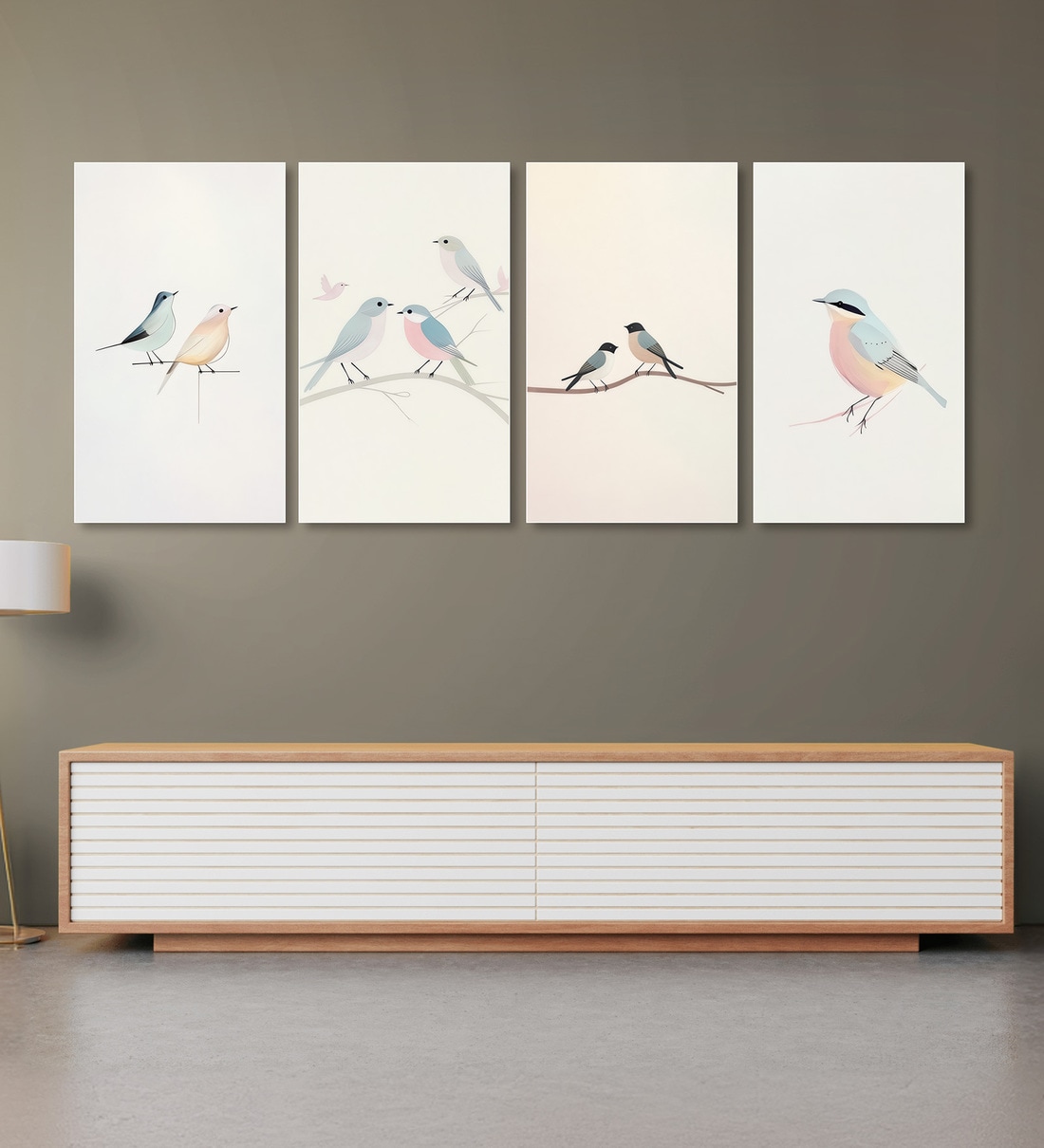 Bird Art Set of 4 Canvas Wall Painting Stretch Canvas Frame