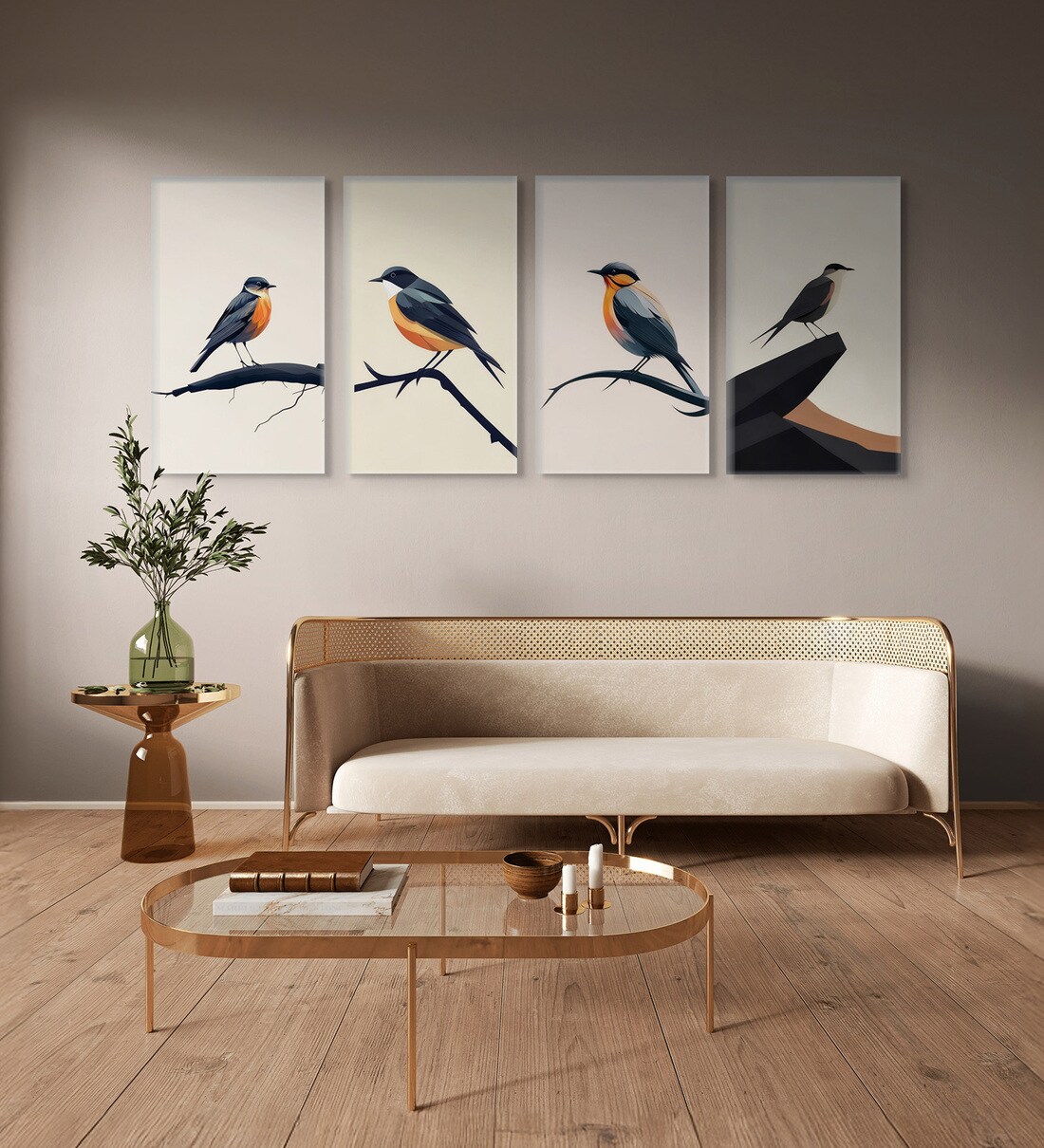 Bird Wall Art Collection Set of 4 Canvas Wall Painting Stretch Canvas Frame