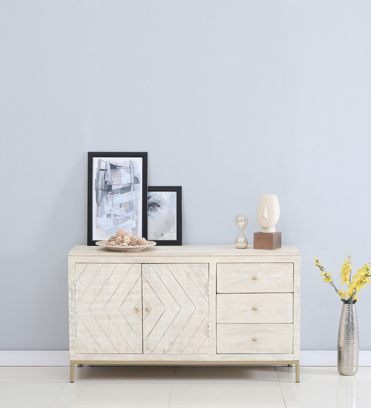 Bizerk Solid Wood Sideboard In Sandblasted White Finish With Drawers