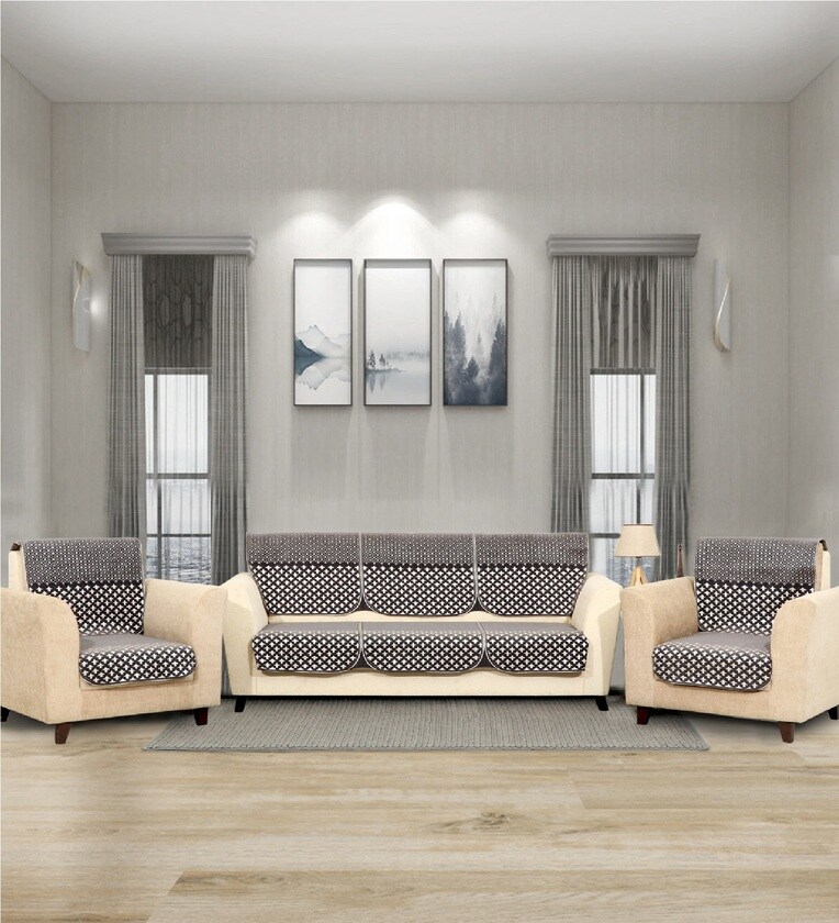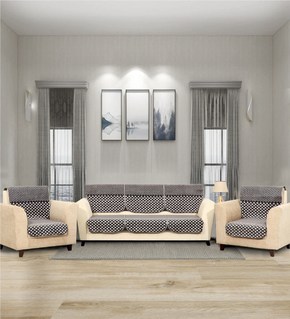 Black 5 Seater Abstract 10Pcs Sofa Covers