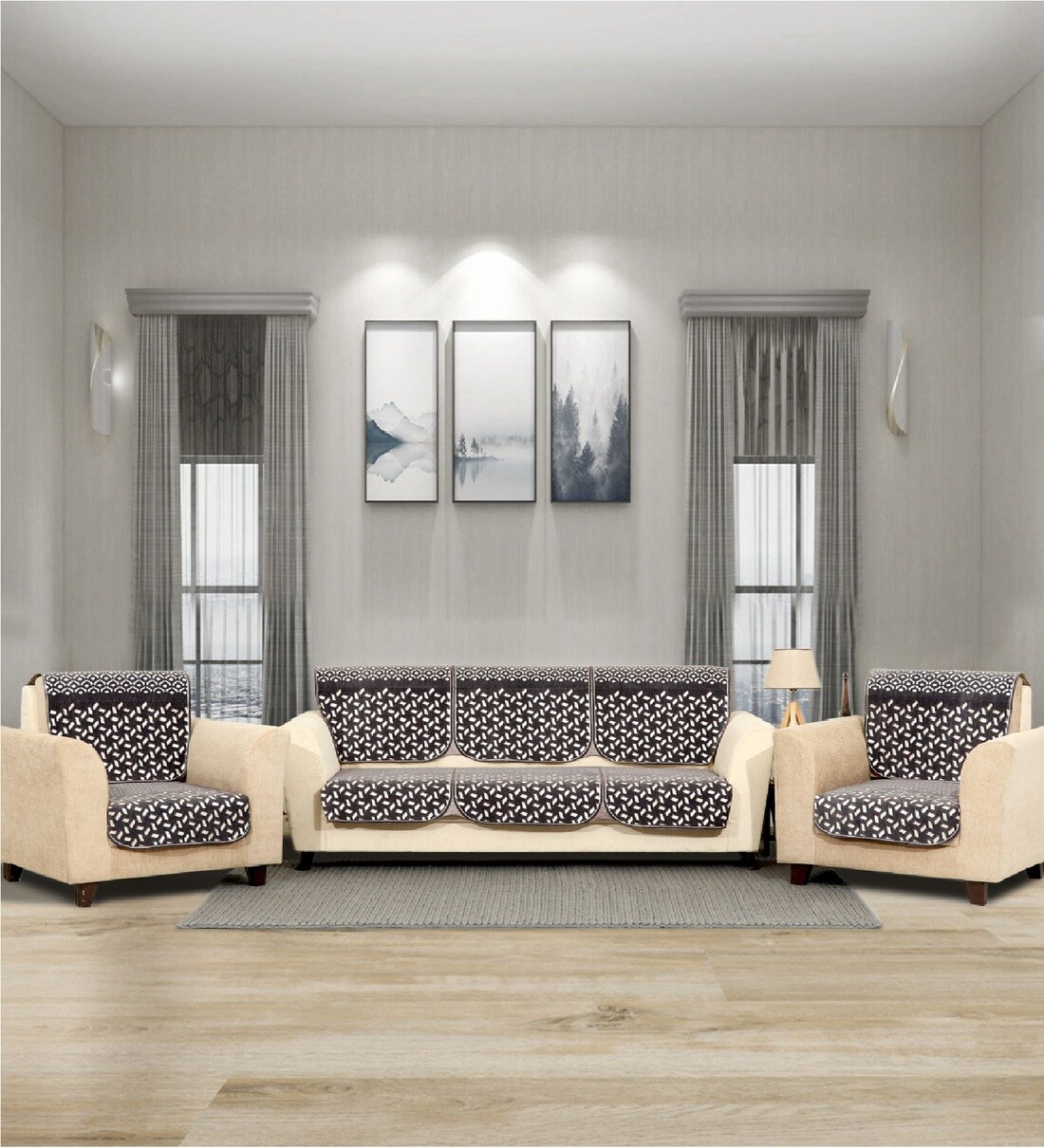 Black 5 Seater Geometric 10Pcs Sofa Covers