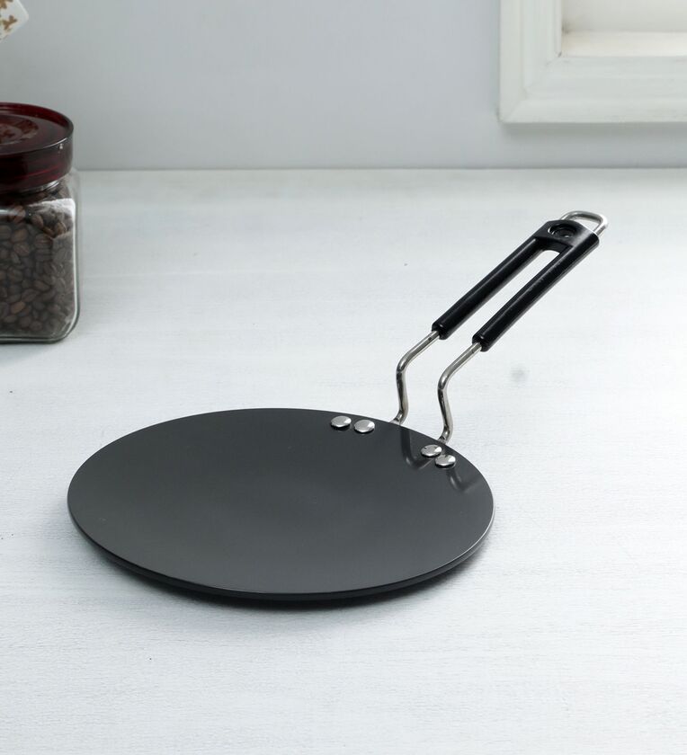 Black Aluminium 4 Mm Rod Hard Anodized Non-Stick Chapati Tawa With Handle