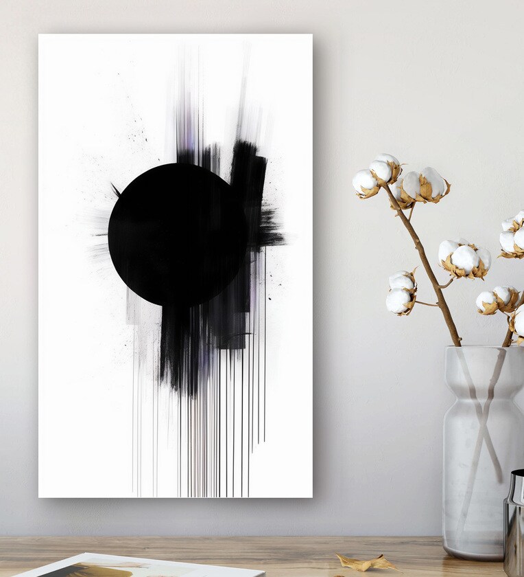 Black Circle on Abstract Canvas Wall Painting White Frame