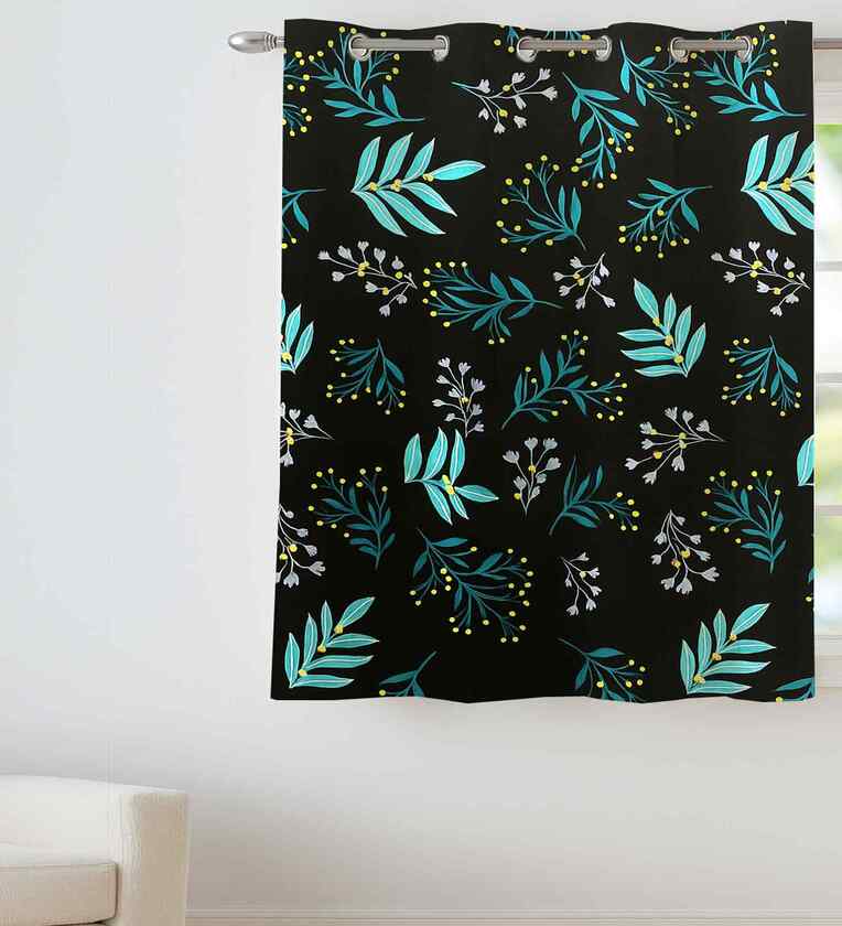 Black Cotton Floral 5ft Window Curtain (1 Pc)