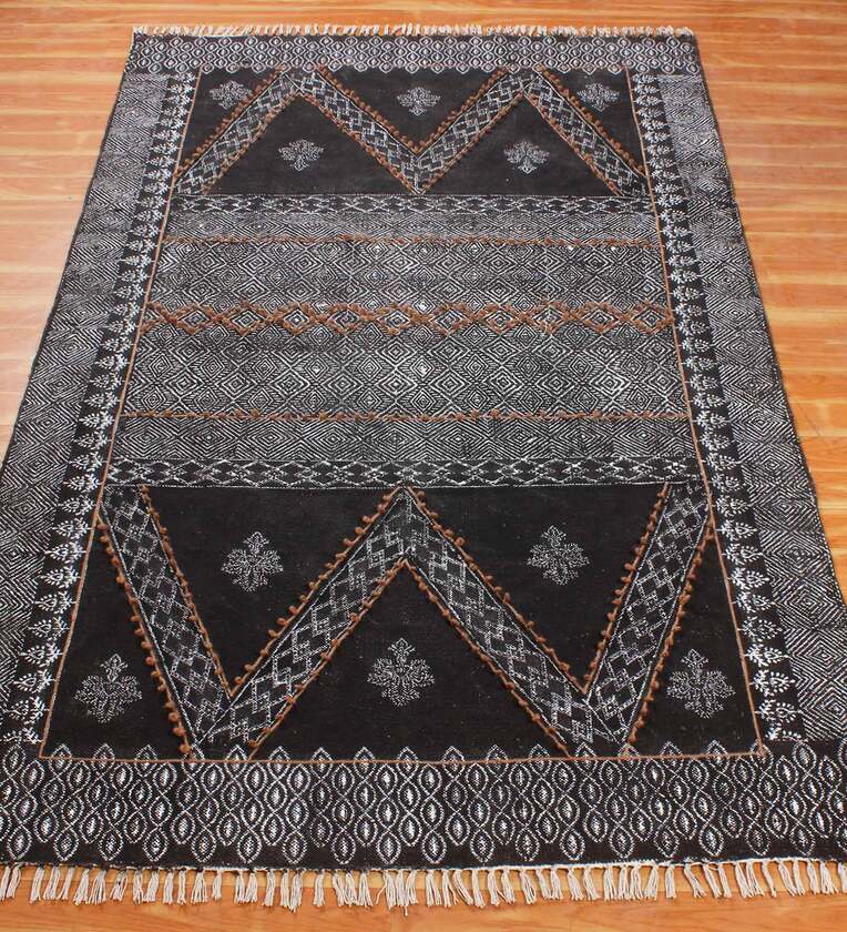 Black Cotton Persian 3x2 Hand Woven Dhurrie
