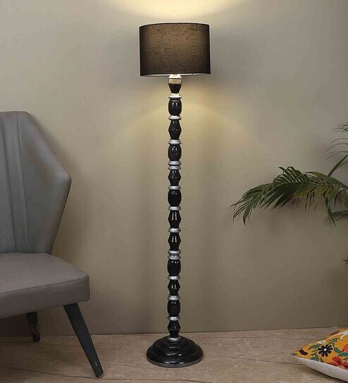 Black Cotton Shade Novelty Floor Lamp Mango Wood Base