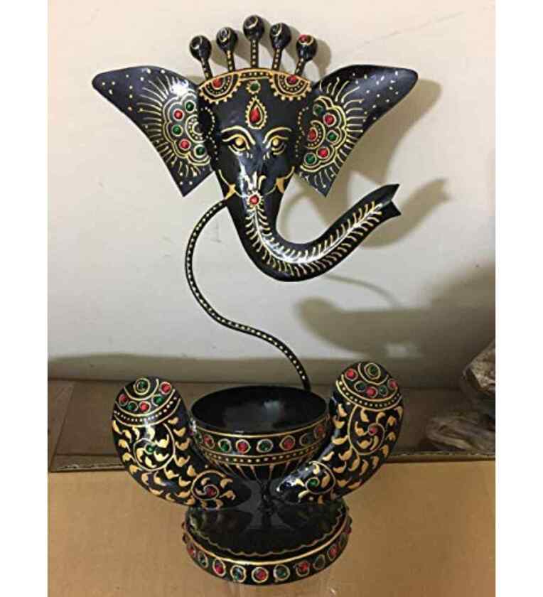 Black Ganesha T Light Holder, Diwali Lights , Diwali Decorative T light Holder Iron 1-Cup Tealight Holder (Gold, Pack of 1)