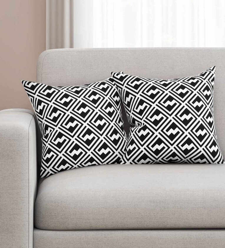 Black Geometric Premium 16 x 16 Inches Cushion Cover (Set of 2)