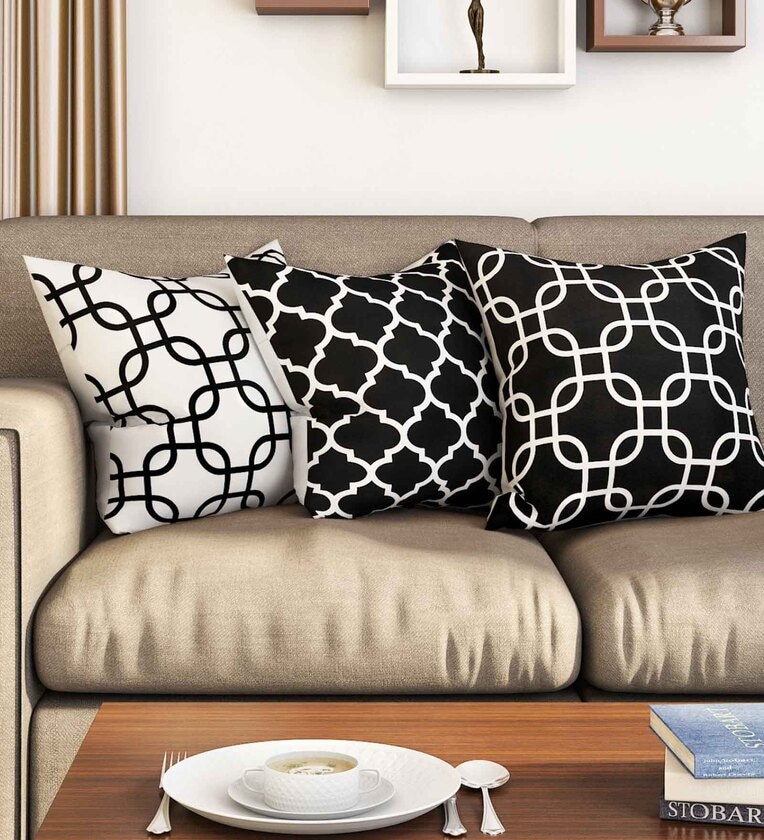 Black Geometric Premium 16 x 16 Inches Cushion Cover (Set of 3)