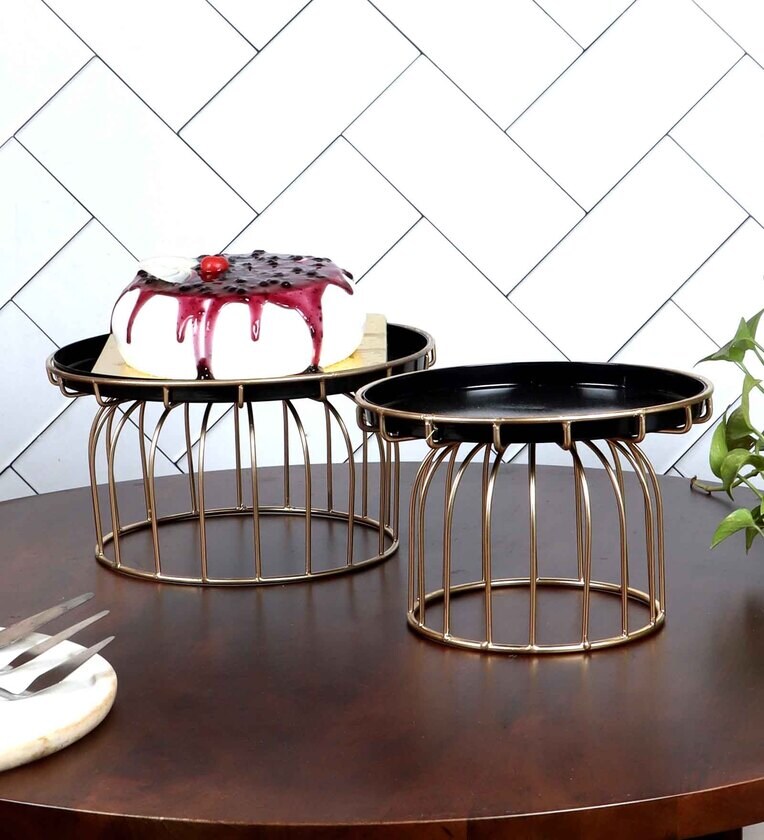 A Black & Gold Metal Cake Platter Set of 2 is Perfect to serve Your Guest , It can be Gifted to your Loved Ones