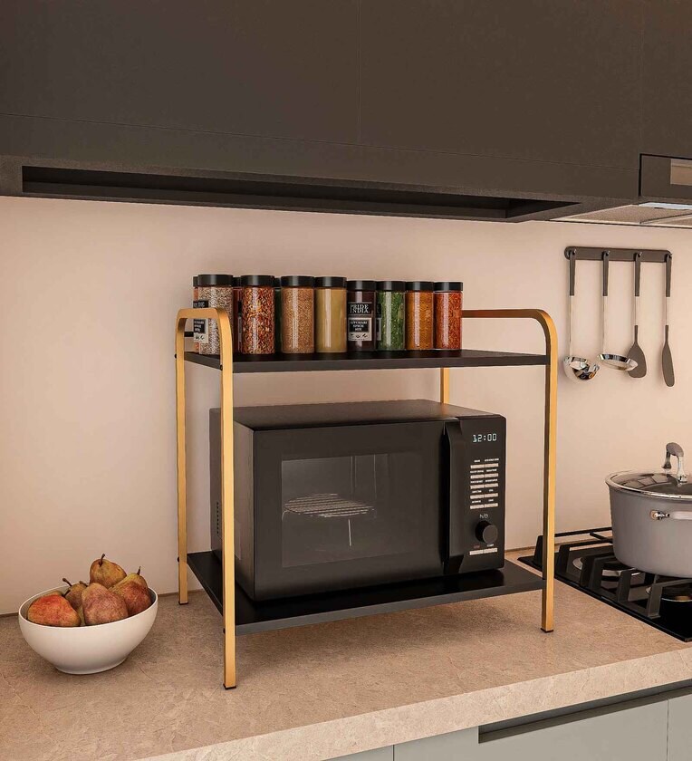 Black & Gold Mild Steel Premium Microwave & OTG Stand For Kitchen Counter