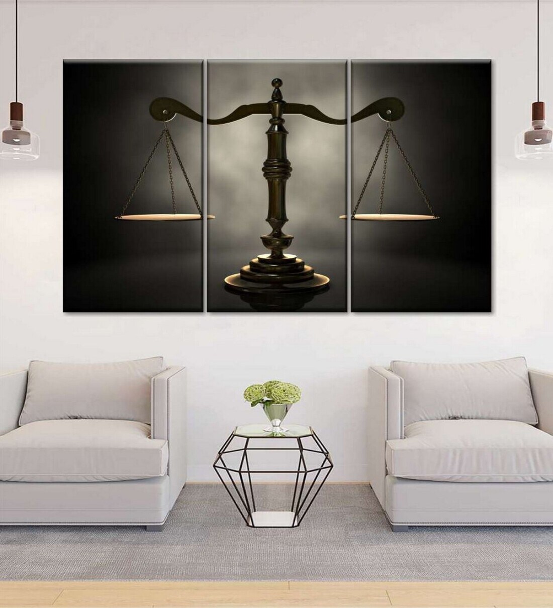 POSTERS AND TRUSS 3-Pcs Black Grey Gold Scales Of Justice Printed Wall Art