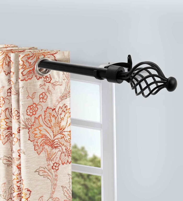 Black Iron Solid (120 Inches) Curtain Rod with Accessories (Pack of 2)