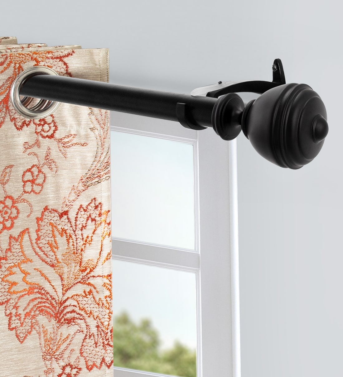 Black Iron Solid (66 Inches) Curtain Rod with Accessories (Pack of 2)