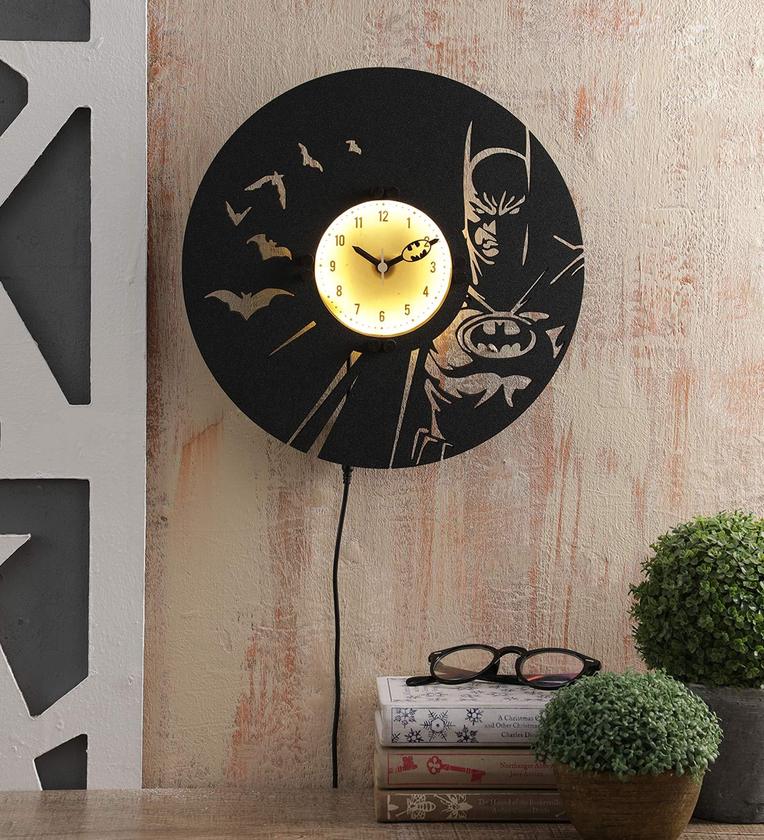 Black MDF Home Batman with Dial Cover Decorative LED Wall Clock