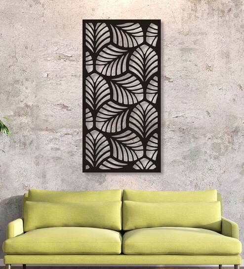 Black Mdf Scattered Leaves Pattern Wooden Wall Art