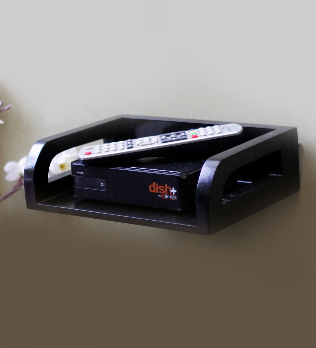Engineered Wood Wall Mounted Set Top Box Holder in Black Colour