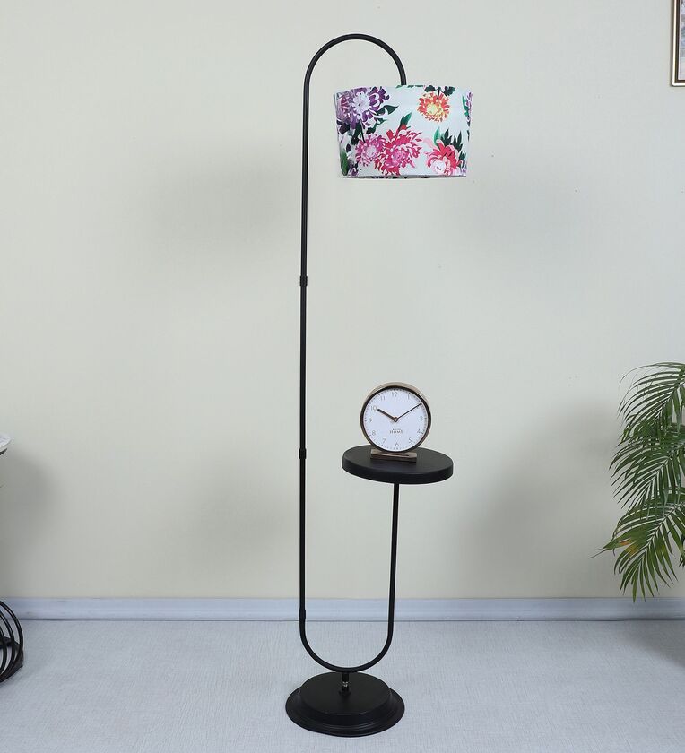 Black Metal-Iron Base Foldable Downlighter Floor Lamps Carnation Print Satin Shade With Height