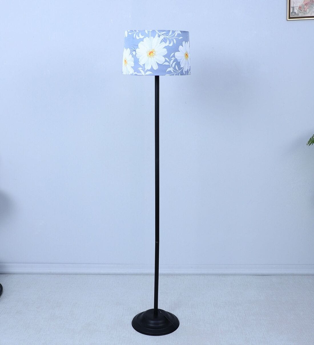 Black Metal-Iron Base Foldable Floor Lamps Narcissue Floral Print Satin Shade