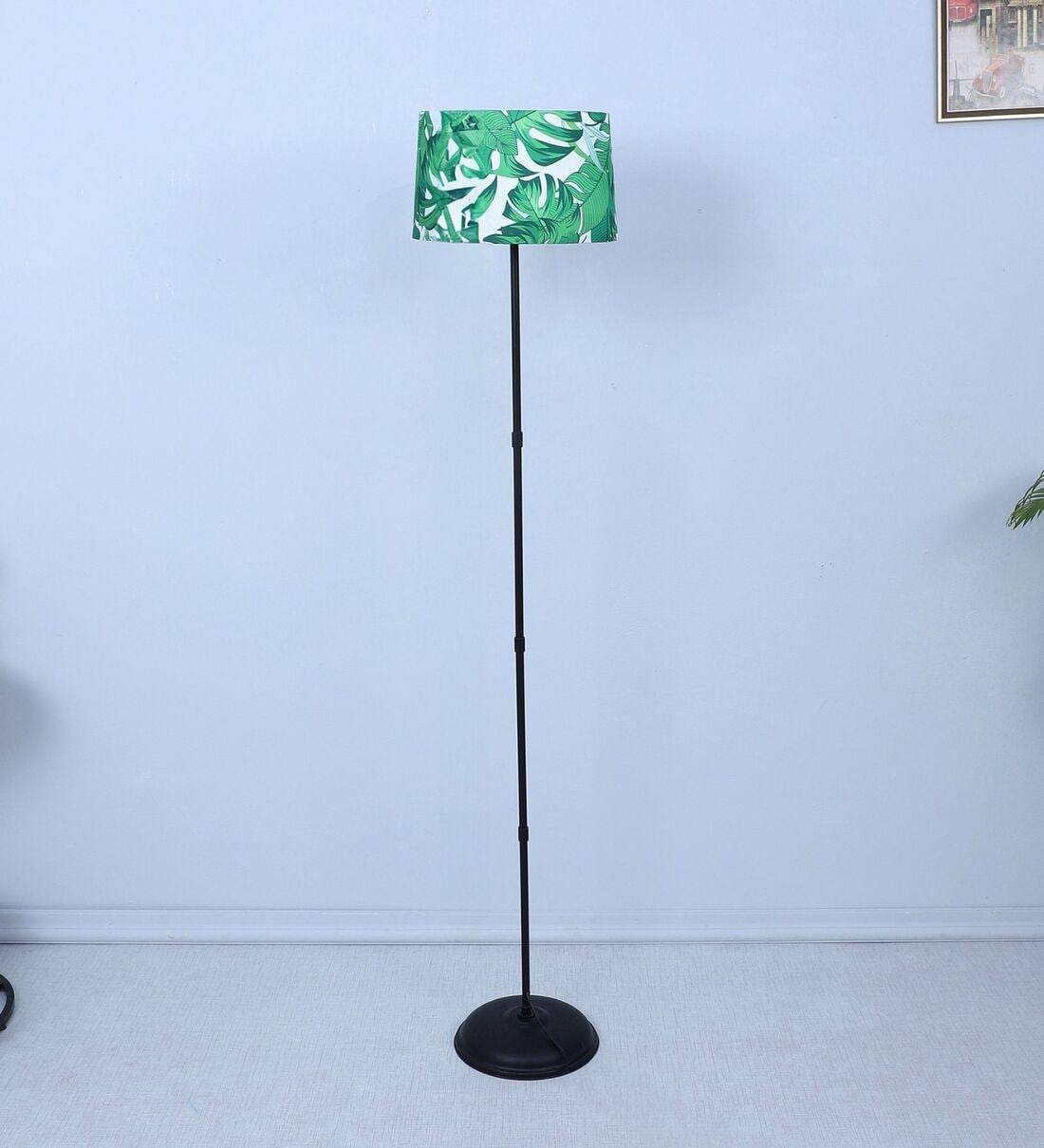 Black Metal-Iron Base Foldable Floor Lamps Palm Print Satin Shade
