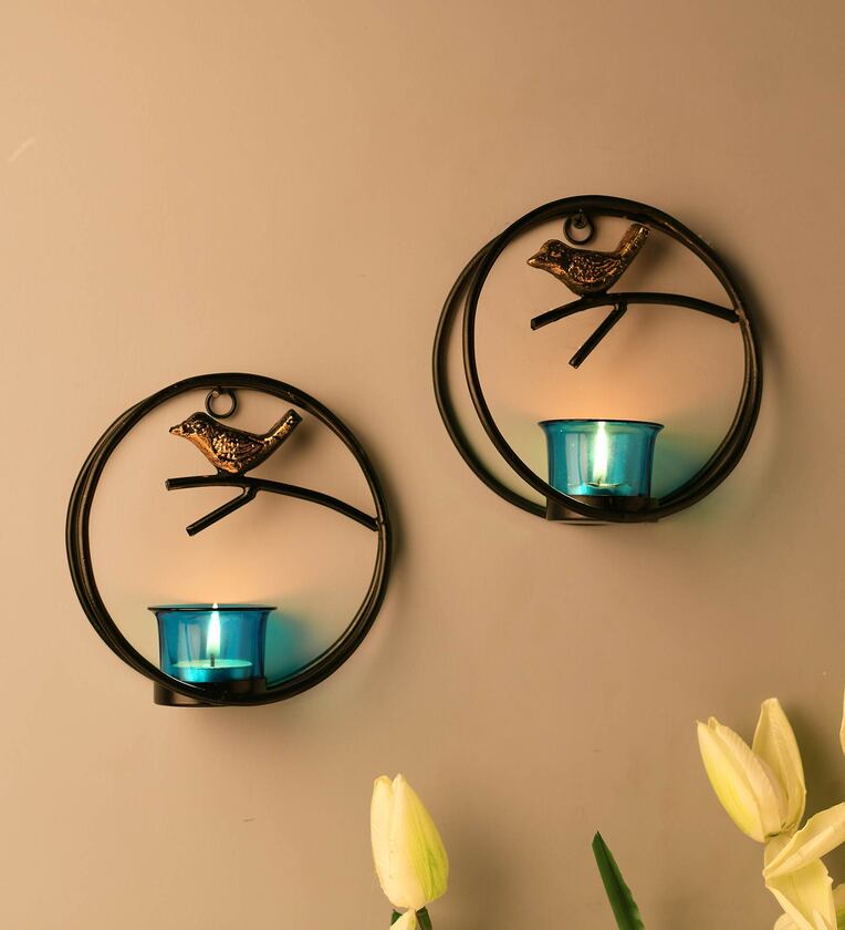 Black Metal Ryan Wall Tea Light Holders (Pack Of 2)