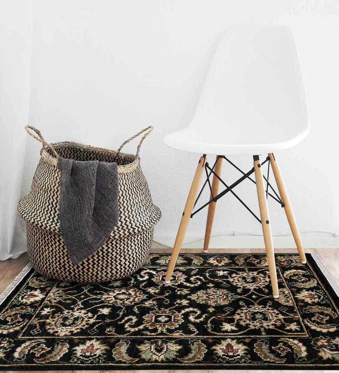 Black Persian Wool & Viscose 2x3 Feet Handmade Dhurrie