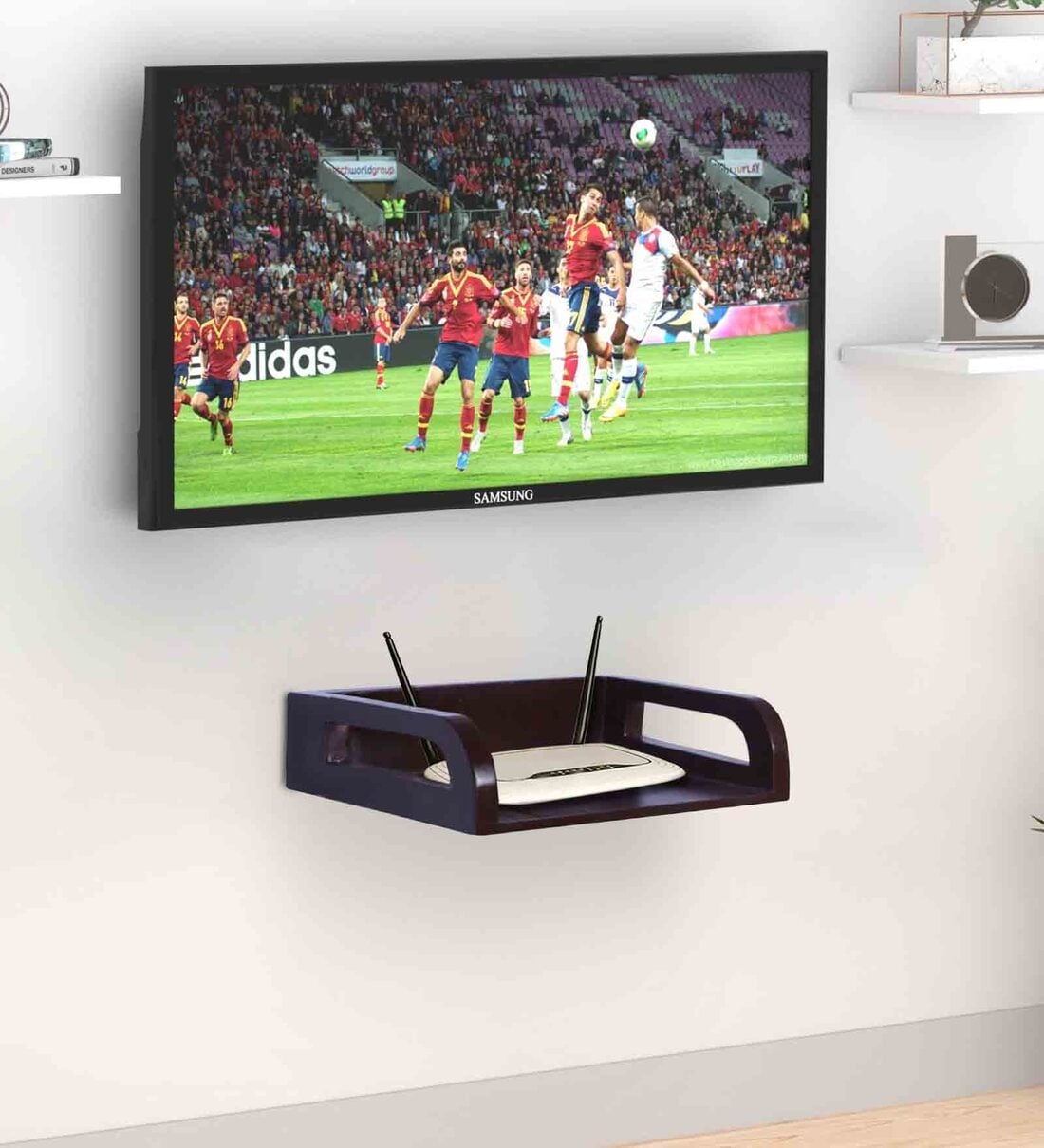 These simple black floating shelves are as much a piece of art as minimalist wall decorative pieces of TV setup of box and can small storage item. Modern design of the shelves add wall mounted accents to any home decor. They are a great choice for your family and friends. This floating TV console has a stylish design, add elegance to your living room, bedroom or media room, and doesn't occupy floor space.