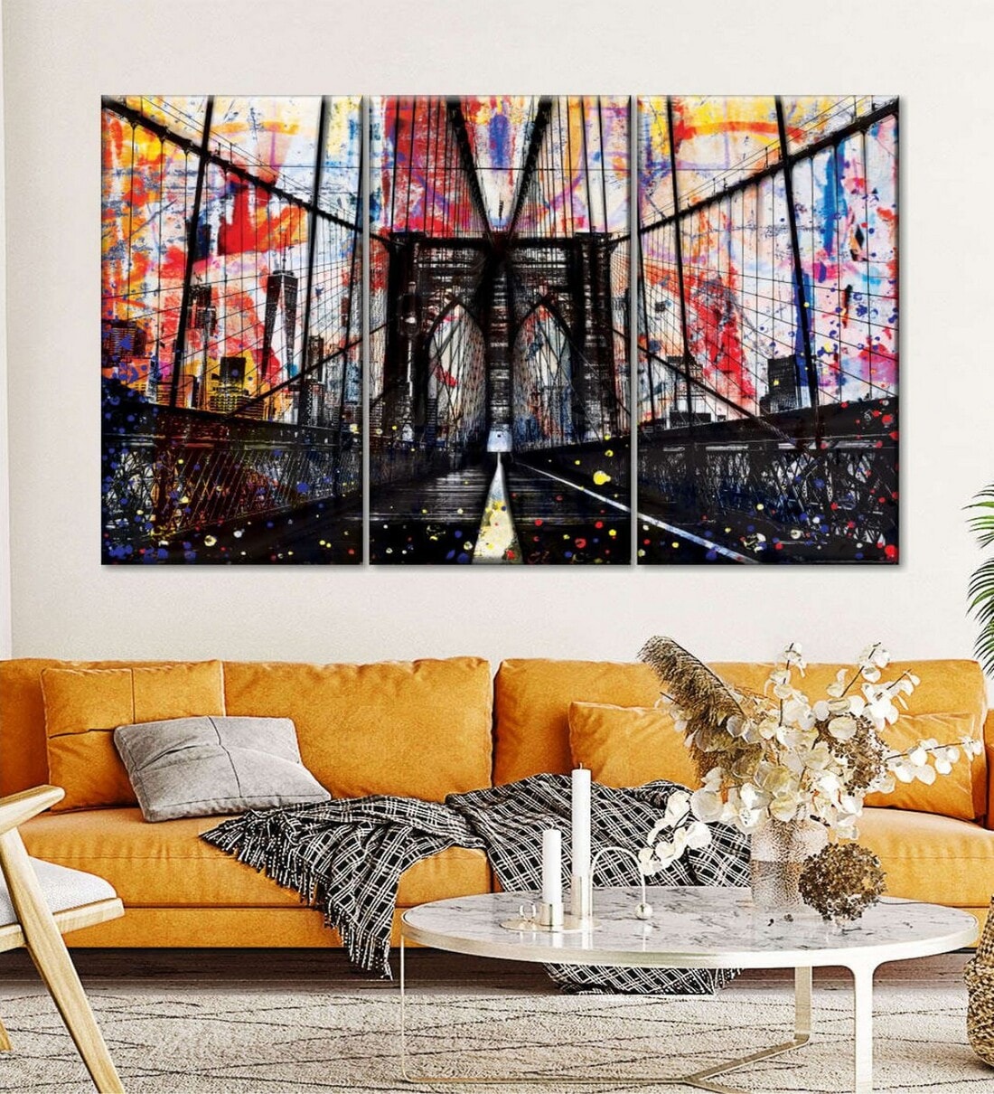 POSTERS AND TRUSS 3-Pcs Black Red Grunge Brooklyn Bridge Printed Framed Wall Painting