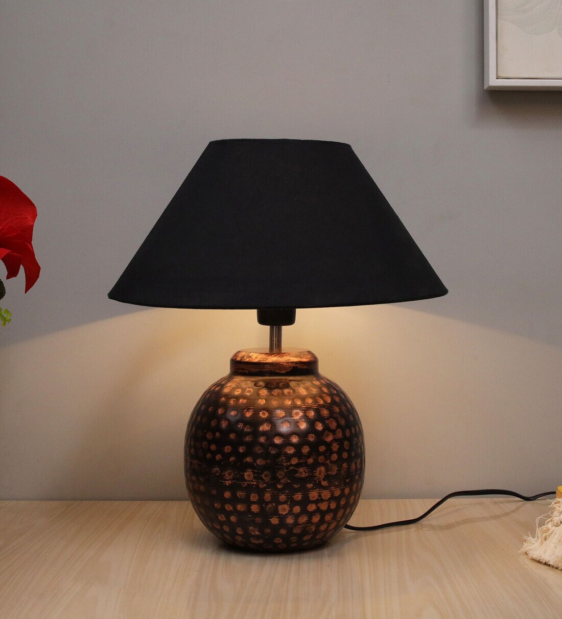 Black Shade Table Lamp With Metal Base