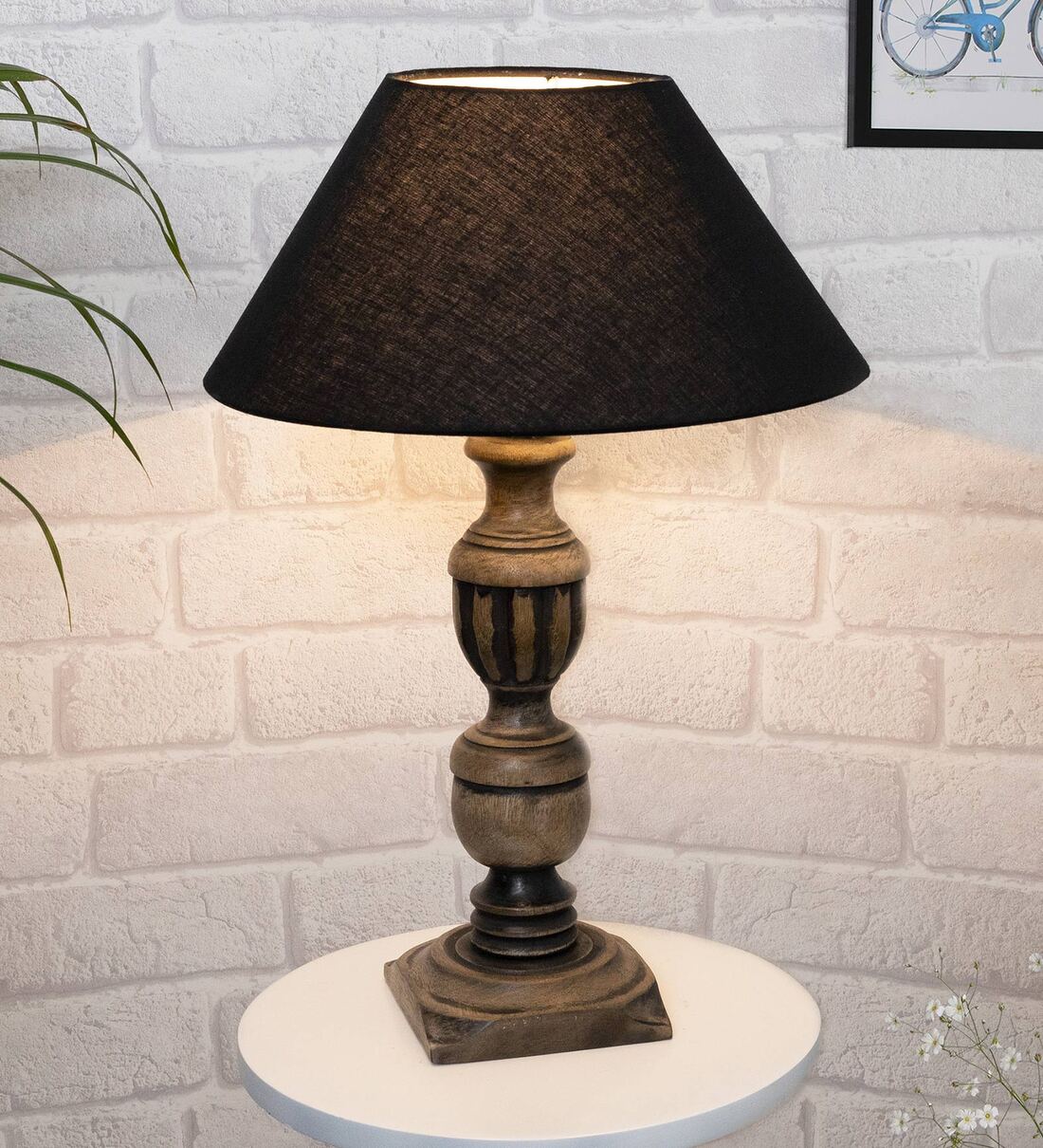 Black Shade Table Lamp With Wooden Base