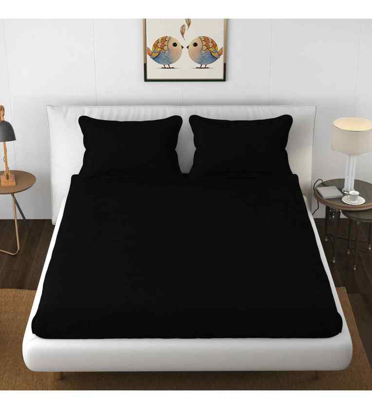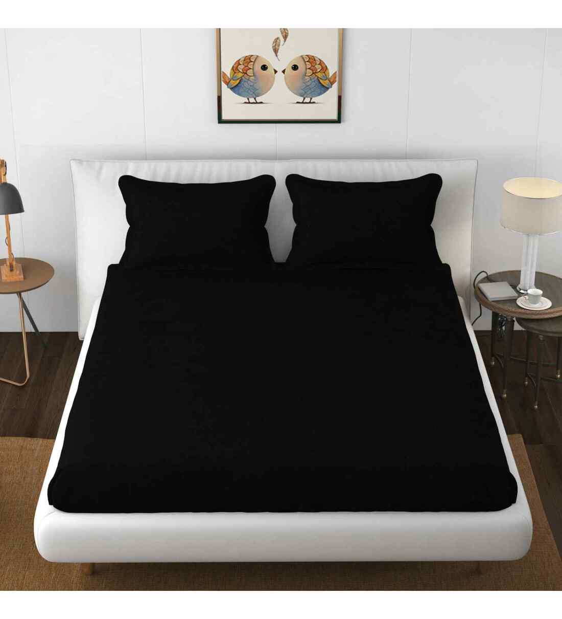 Black Solid 144 TC Cotton King Sized Bedsheet Bedsheet 2 Pillow Shades Collection