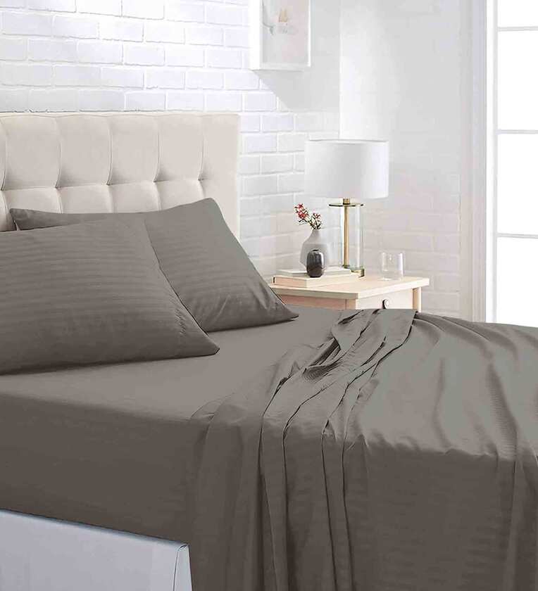 Black Striped 220 TC Microfiber Queen Sized Bed Sheets with 2 Pillow Covers