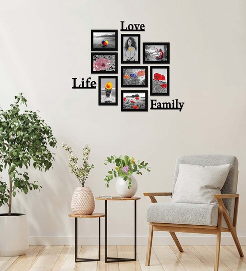 Set of 8 Individual photo frames with Love,Life & Family Plaque