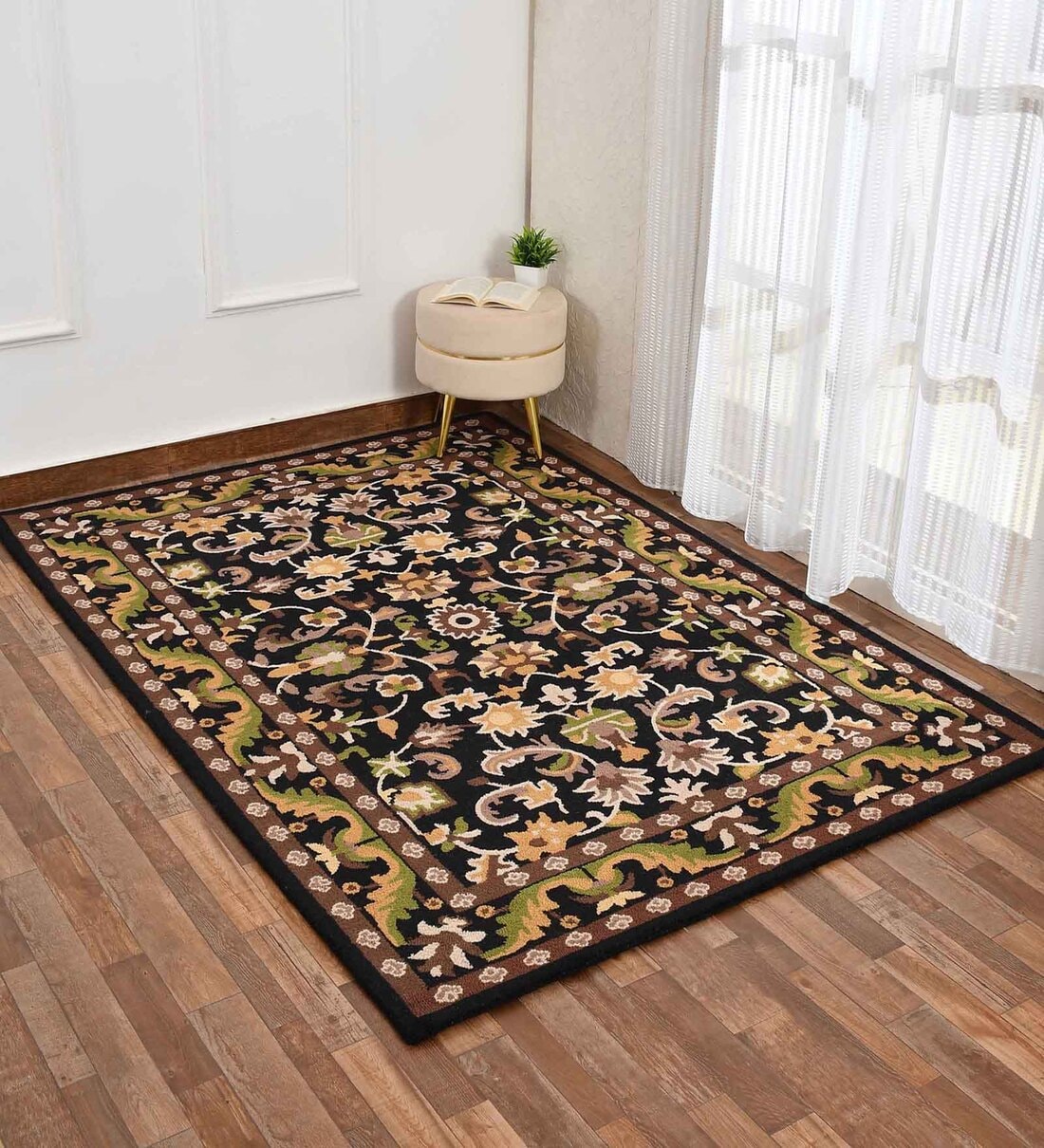 Black Traditional Wool 6 ft x 9 ft Hand Tufted Carpet