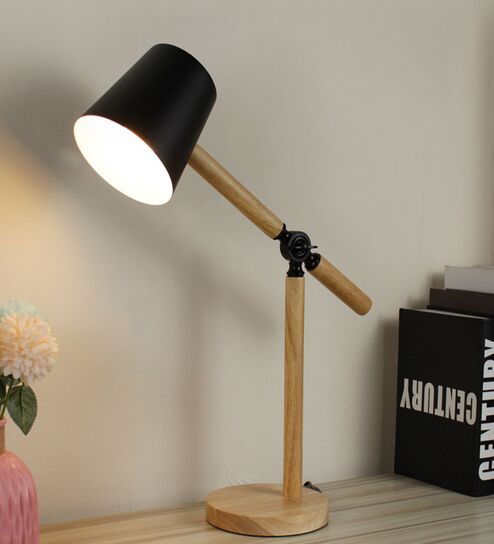 Black Wooden Finish Long Arm Modern Study Lamp