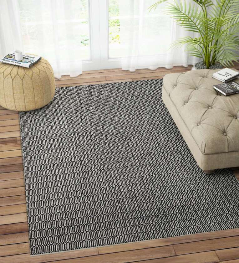 Black Wool Geometric 96 x 60 Inches Hand Woven Dhurrie