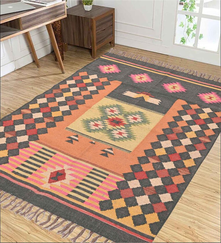 Black Wool & Jute Traditional 72 x 48 Inches Hand Woven Dhurries