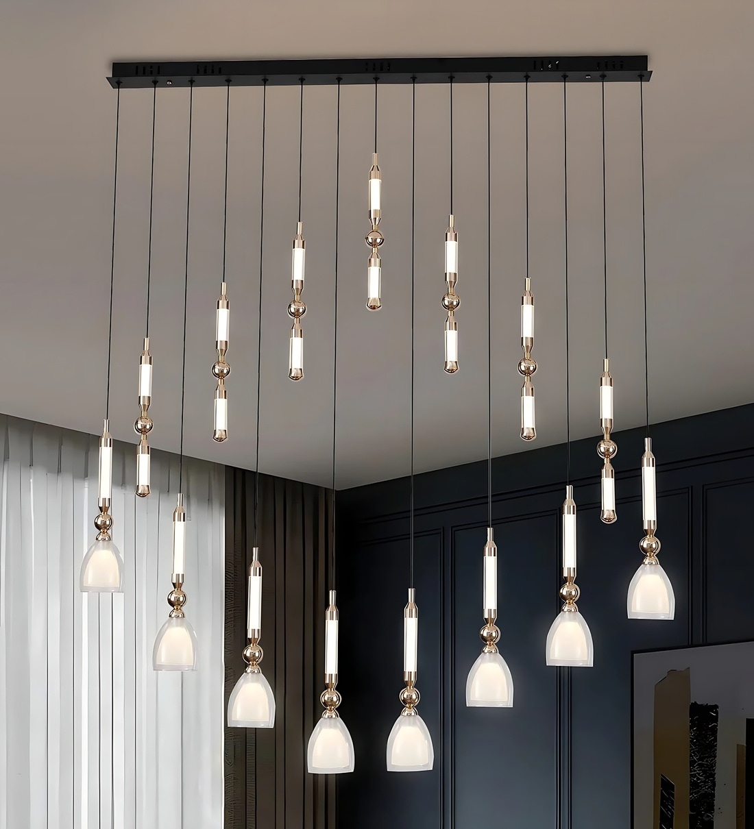 Blazily Smart Voice LED Chandelier Light | Stylish Modern Ceiling Fixture with Voice Control | Ambient Lighting for Living Room, Bedroom & Dining