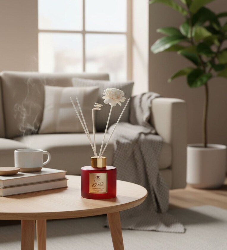 IRIS Bliss Reed Diffuser, thoughtfully crafted to fill your space with a soothing, long-lasting fragrance. Designed to gently diffuse aroma without flame or electricity, this elegant home fragrance solution enhances your surroundings with continuous freshness and refined style. The diffuser comes with 100 ml of premium fragrance oil and natural reed sticks that gradually absorb and release scent into the air, creating a balanced and inviting atmosphere throughout the day.