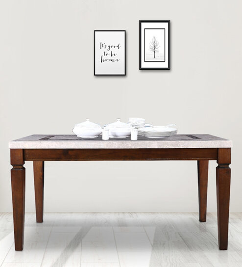 Bliss Solid Wood 6 Seater Dining Table in Beige Finish with Marble Top