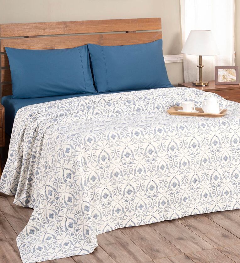 Blue Abstract 300 TC Cotton and Viscose Double Bed Cover