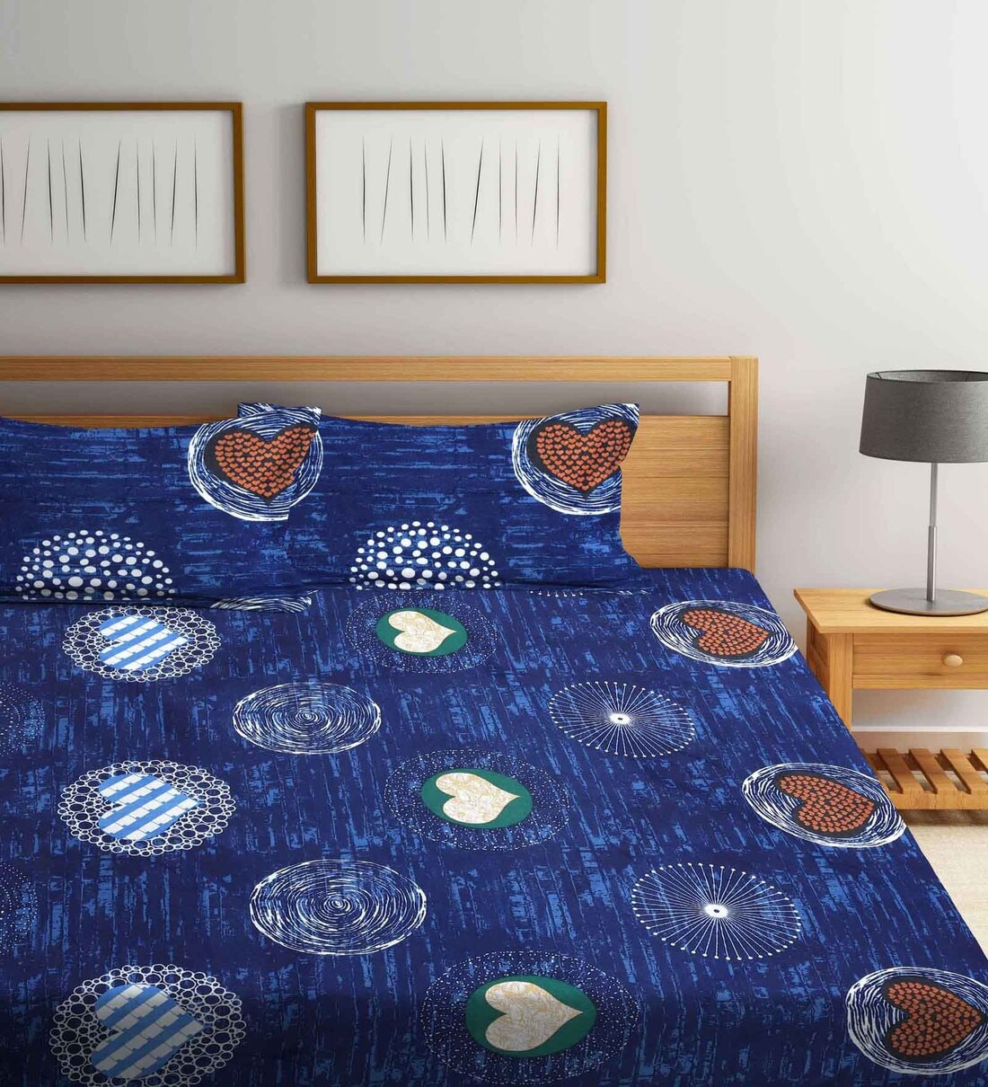 Blue Abstract 300 TC Cotton Blend Double King Sized Bedsheet With 2 Pillow Covers